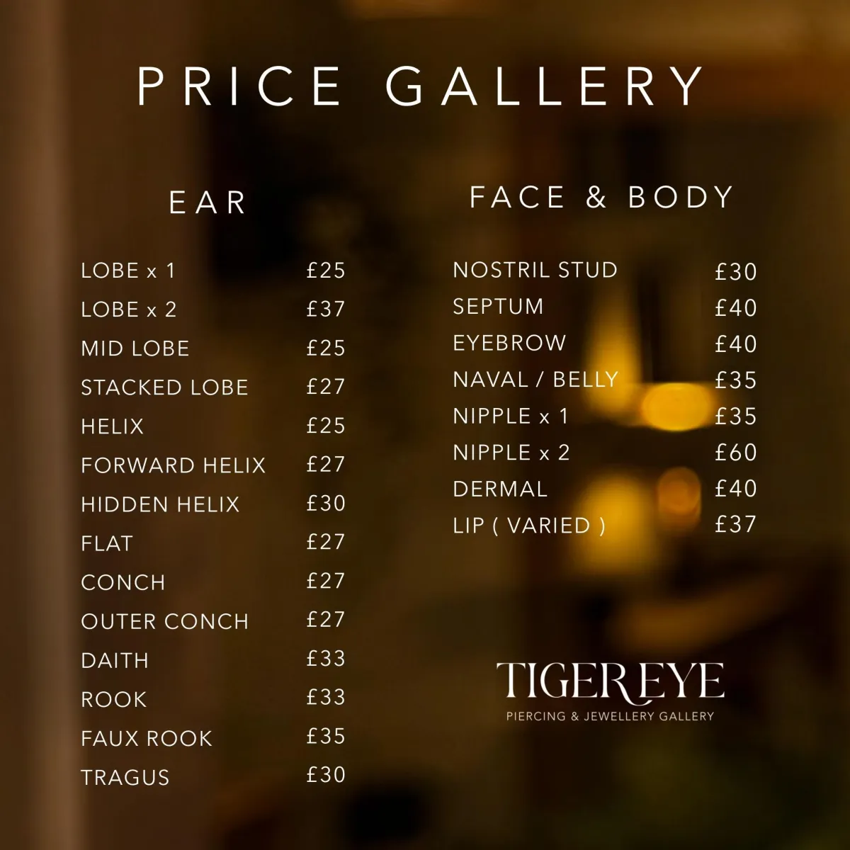 Finer Jewellery can be used to pierce for an added price of £3+